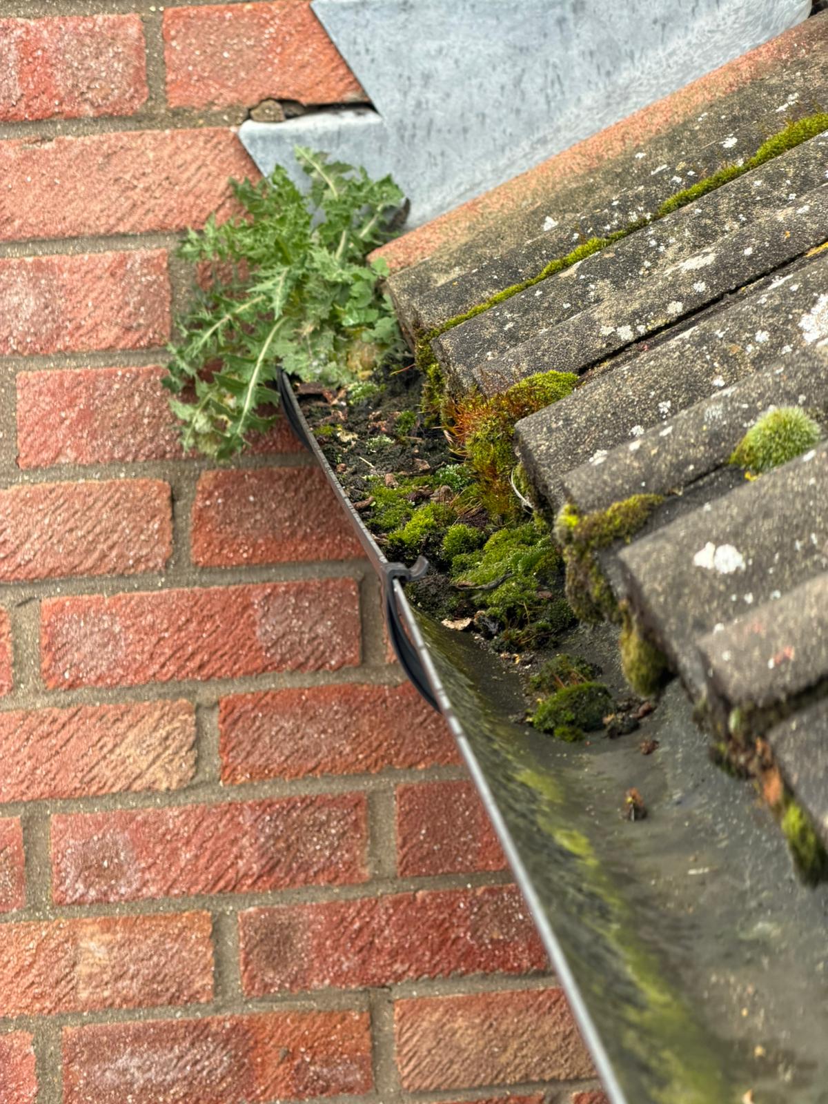 Moss is a particularly common problem. Properties that are shaded by trees or face north often receive less sunlight, creating the perfect conditions for moss to thrive in damp, shaded areas. Damp debris in gutters also provides a breeding ground for moss and weeds, which can grow quickly and block water flow, eventually leading to overflow. Regular clearing before winter helps prevent additional damage from snow or ice.
